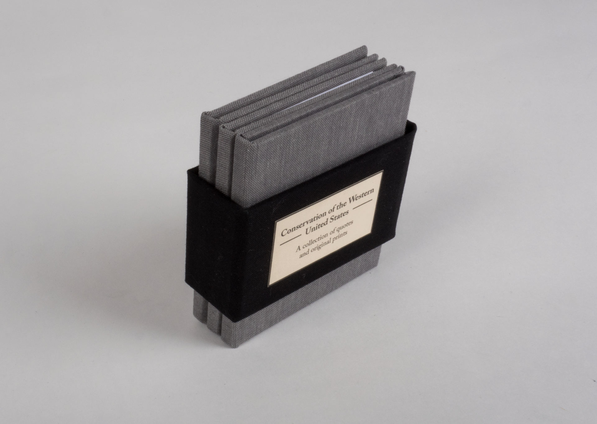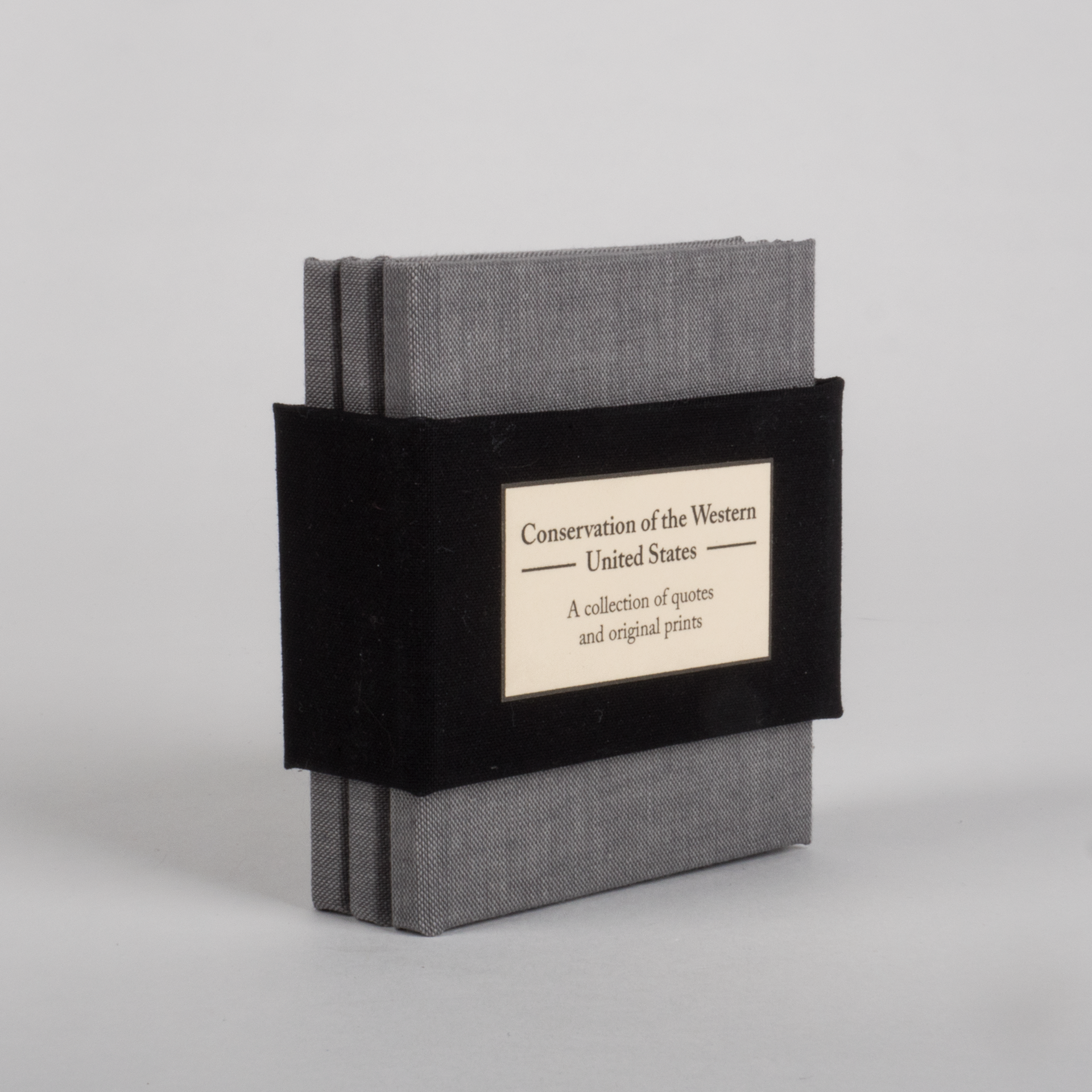 Gathered quotes from influential conservationists and explorers of the Western United States and paired those quotes with original linoleum prints. The book covers, case, prints, and binding were all made by hand.