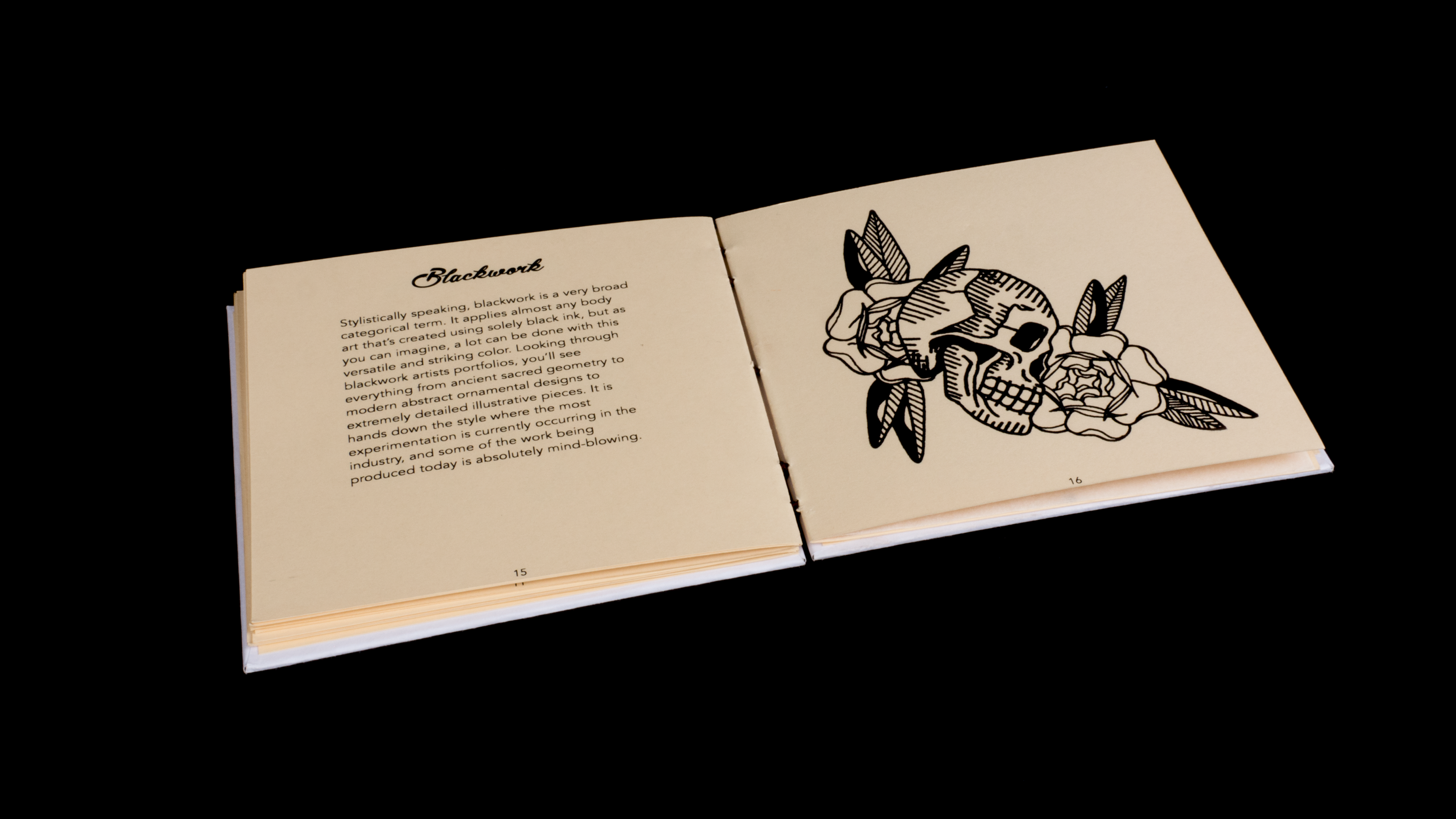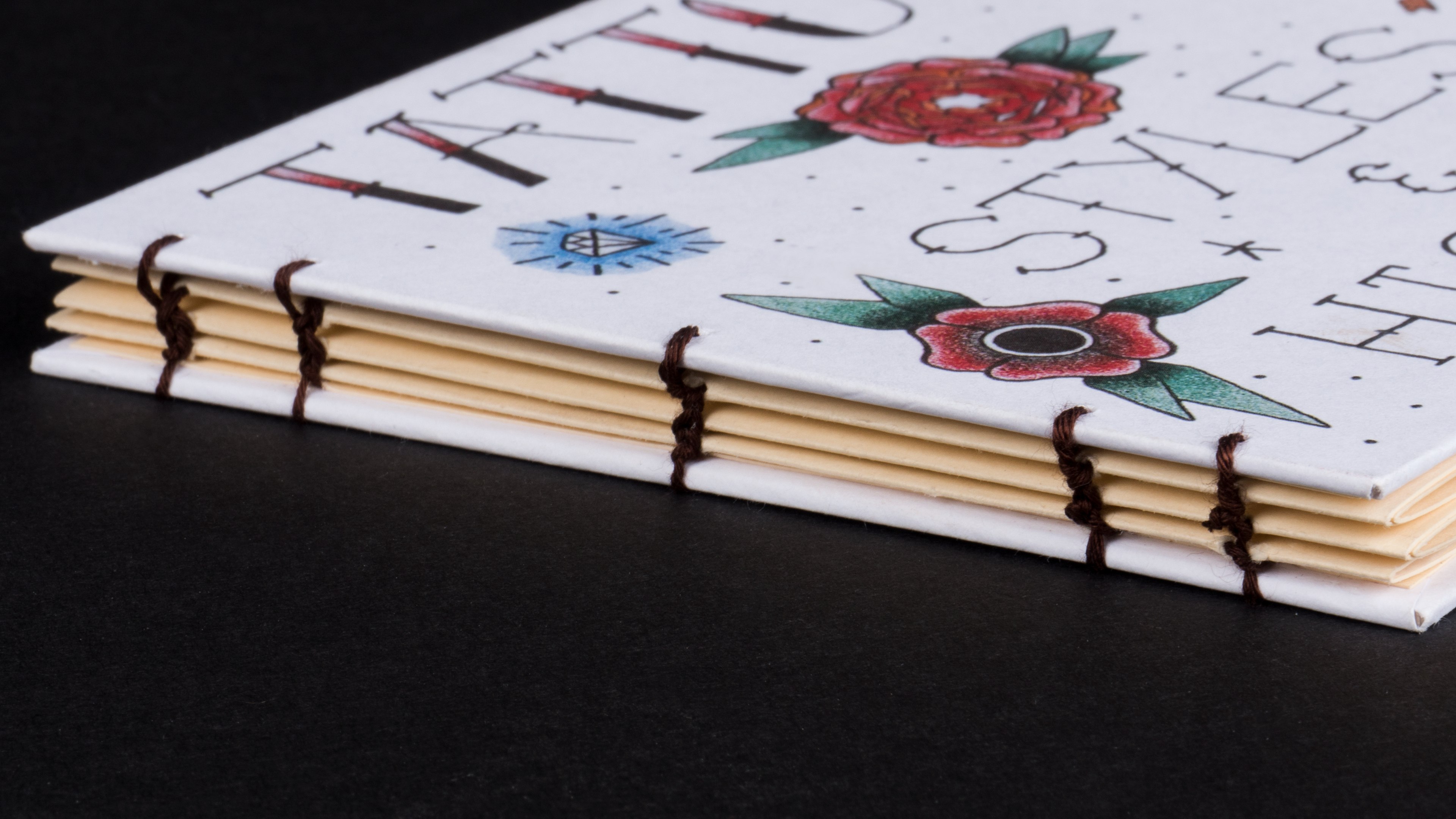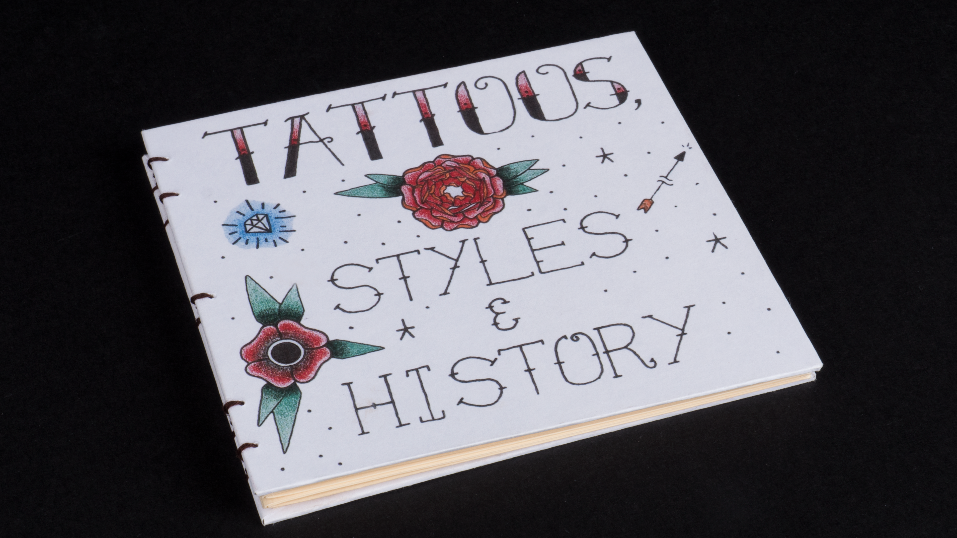 Designed, illustrated and bound a book referencing different styles of tattoos and their history. Illustrations were created with pen and colored pencil and were then scanned to create the image content of the book.